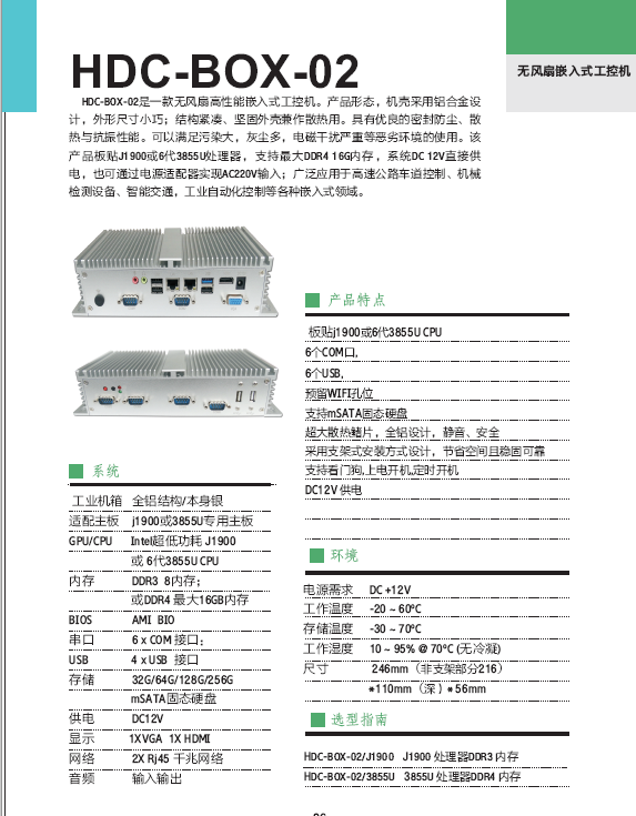 HDC-BOX-02是一款無風(fēng)扇高性能嵌入式工控機。產(chǎn)品形態(tài),機殼采用鋁合金設(shè)計,外形尺寸小巧;結(jié)構(gòu)緊湊、堅固外殼兼作散熱用。具有優(yōu)良的密封防塵、散熱與抗振性能??梢詽M足污染大,灰塵多,電磁干擾嚴(yán)重等惡劣環(huán)境...
