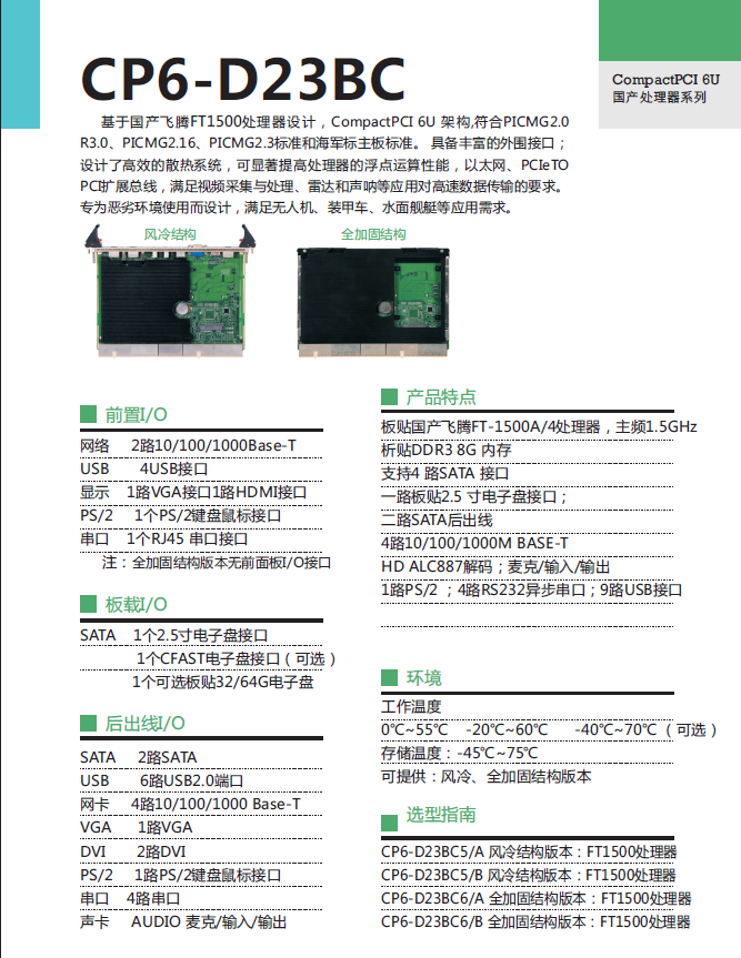 基于國產(chǎn)飛騰FT1500處理器設(shè)計(jì),CompactPCI 6U 架構(gòu),符合PICMG2.0